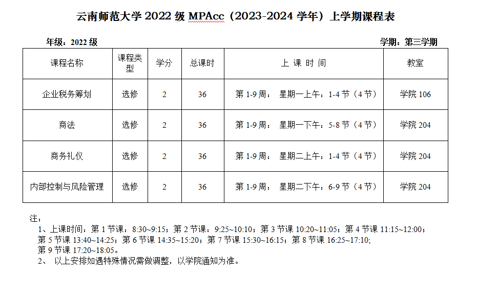 2022级MPAcc第三学期课表