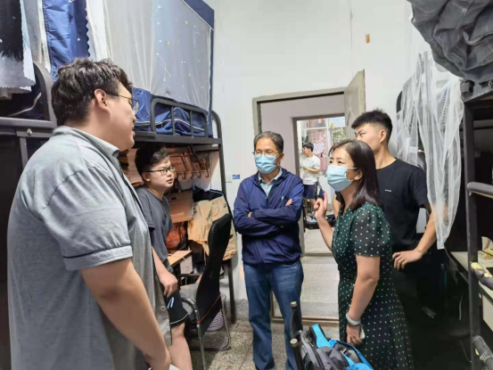 为进一步加强员工的教育和管理,强化宿舍防疫安全工作,8月22日晚,公司党委书记和向朝、副书记周宁、班主任及辅导员共同走访了员工宿舍。