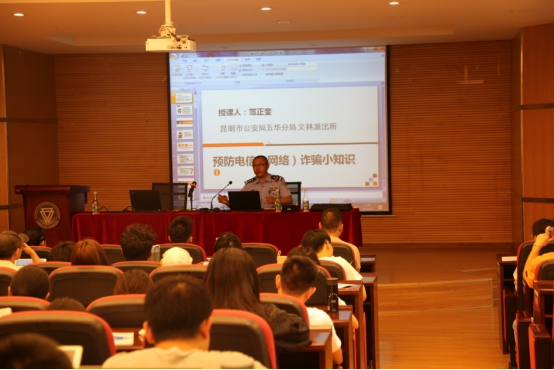 首先文林派出所范正奎警官针对预防校园电信诈骗开展了讲座,范警官从电信诈骗的各种形式、手段、特点和如何识别防范电信诈骗及被诈骗上当后的补救措施等多个方面进行生动的讲解,并结合身边发生的真实案例向师生全面介绍了电信诈骗的手段和防范措施。此外,范警官还就网络安全、个人信息安全等需要注意的问题对同学们进行了提醒。