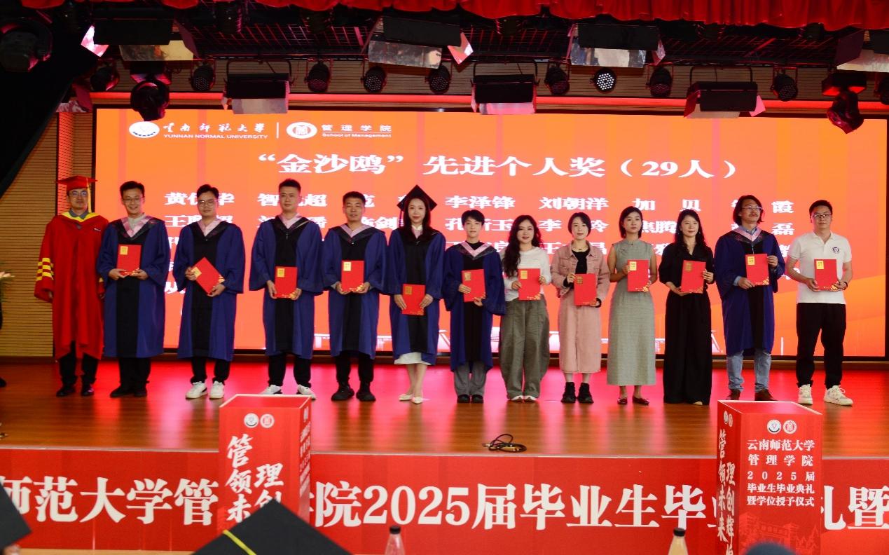 李正升书记宣读了《关于表彰2025届省级、校级优秀毕业生的决定》,并与李艳经理、李明副经理、夏百川副经理共同为优秀毕业生代表颁奖。徐锐副董事长为在第十四届商公司沙漠挑战赛中卫冕“金沙鸥”奖的“沙14”团队代表颁奖,肯定他们用脚步诠释“刚毅坚卓”校训的精神。