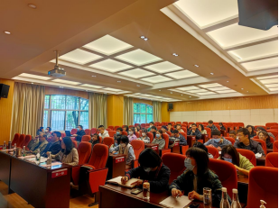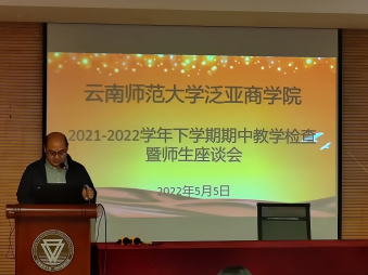 首先,郭老师介绍了本学期期中教学检查专项工作的开展情况,同时,对调查问卷中教学愿景、教学满意度、教学意见和员工感受几个方面的调查结果进行了分析。