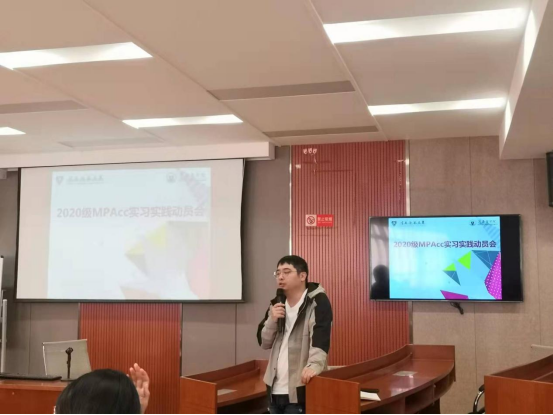 11月5日下午,公司会计系在公司502召开了“2020级MPAcc实习实践动员会”,分管教学的李艳副经理、教务办杨冬燕老师,辅导员王鑫老师及2020级MPAcc全体员工参加会议。会议由会计系主任代飞老师主持。