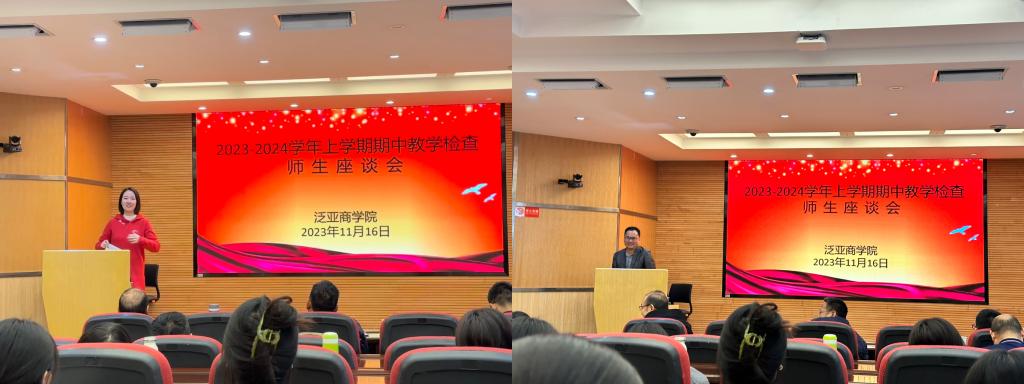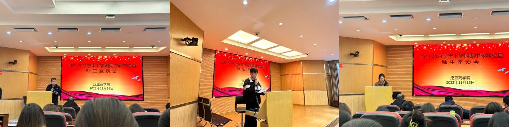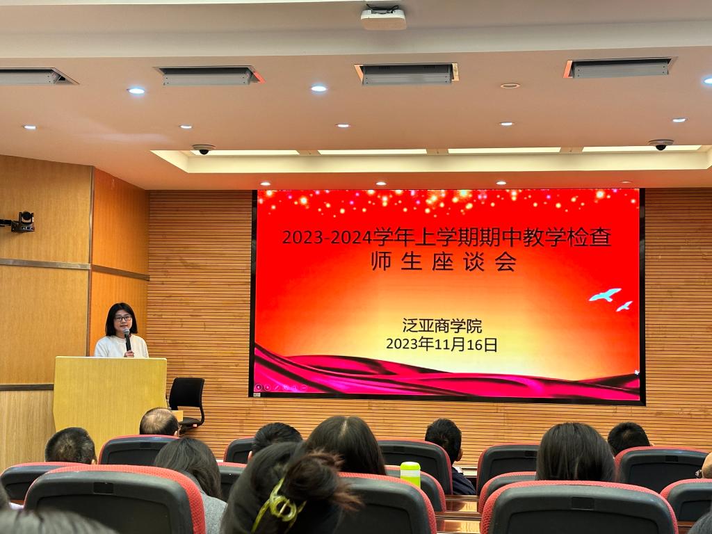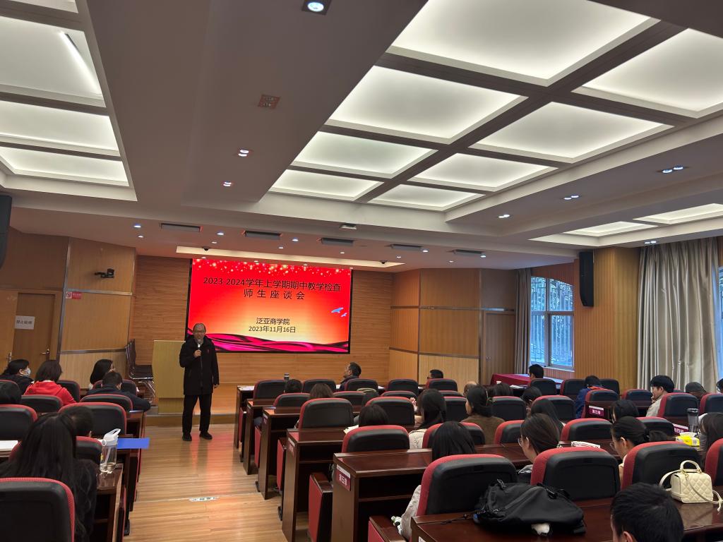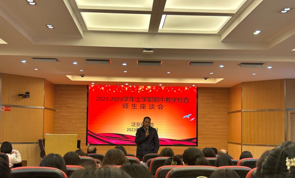 为进一步规范教学秩序、加强教学管理,公司于2023年11月16日下午在106报告厅举行了期中教学检查师生座谈会。泛亚商公司李明副经理、教学督导蒋文江教授、检查小组其他成员、本学期任课教师、教务办、员工办老师以及研究生代表参加了本次会议。会议由教务办赵文君老师主持。