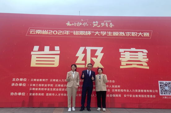 12月3日-5日,在由中共云南省委教育工委、云南省教育厅、云南省人力资源和社会保障厅、云南省工商业联合会主办的云南省2021年“铭鼎杯”老员工模拟求职省级比赛中,公司三名同学作为公司代表队成员参加比赛并喜获2金1铜的佳绩,2021级会计专业龚成琳同学、2020级会计专业迟雪华同学分别获公招组、事招组金奖,2020级会计专业马宇箫同学获企招组铜奖。