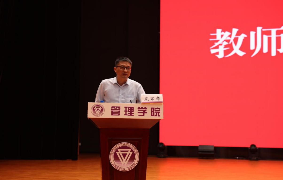 教师代表王俊程老师结合自身的成长经历,勉励同学们要注重理论知识的学习,加强实践,学习为人处世之道;通过网络、线下讲座等扩充知识面,不断研习,提升写作和技术技能。