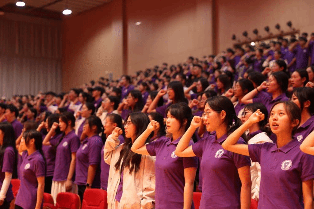 最后,2024级全体新生在辅导员王诗彧老师的带领下进行庄严宣誓,将铭记校训,恪守校风,践行学风,立志成才,为国家、社会和人类的进步而努力奋斗。