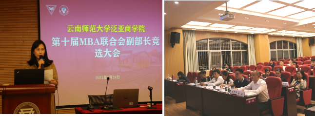 2021年9月24日晚19:00,公司在教学楼106报告厅举行了“3044永利官网泛亚商公司第十届MBA 联合会副部长竞选大会”。公司党委副书记周宁、MBA中心系主任李丽、员工办主任钱燕和张群芳老师列席参加,第十届MBA联合会主席张超、副主席李红霞、张宗荣、刘菲、汤程、南浩、锡道林以及各班竞选人约50余人参与了本次竞选。