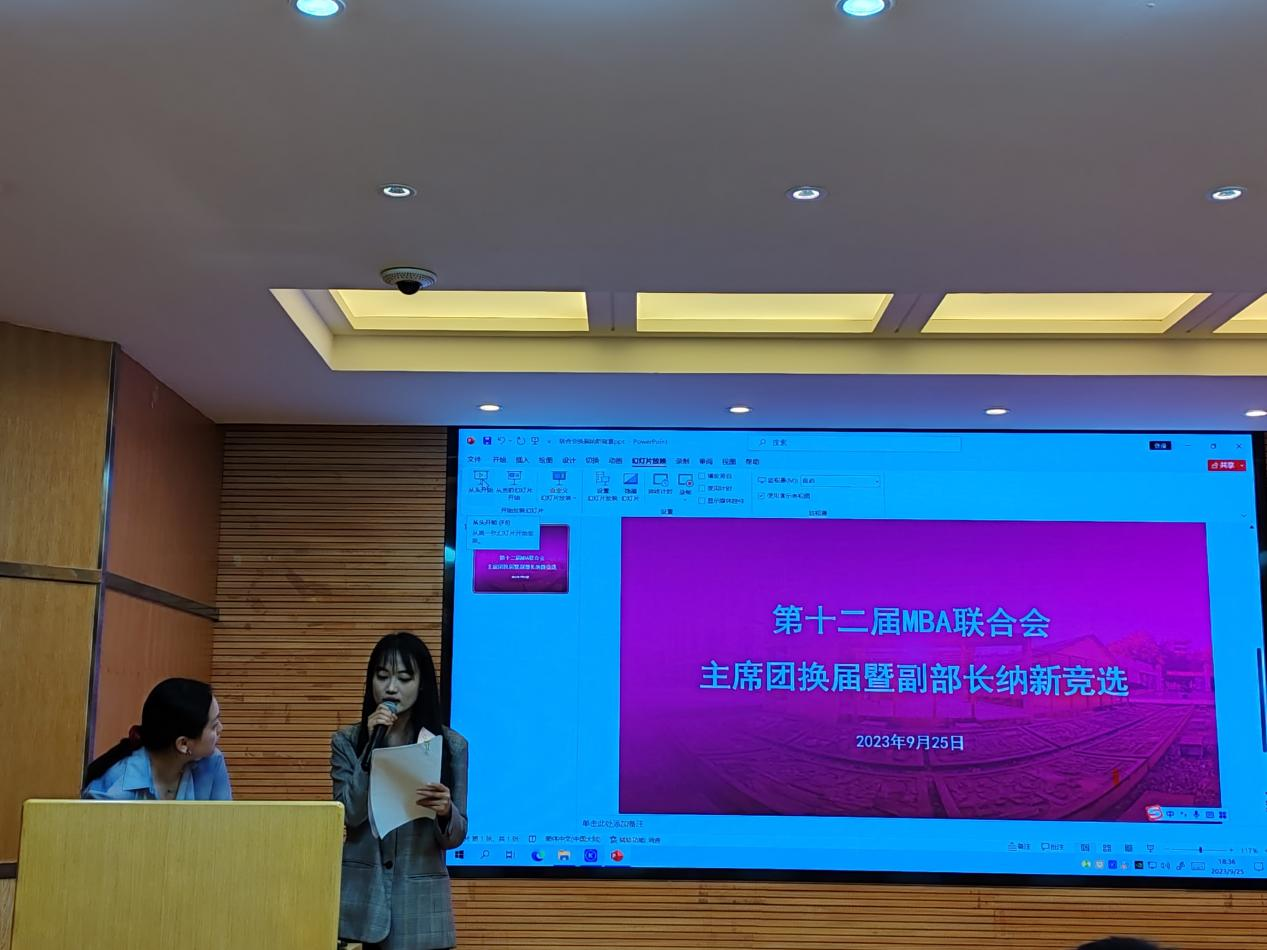 2023年9月25日晚,公司举行了“3044永利官网泛亚商公司第十二届MBA联合会主席团换届暨副部长纳新竞选大会”,竞选在公司106报告厅进行。第十一届MBA联合会主席团成员及各班竞选人约60余人参与了本次竞选。竞选由秘书处闫艺主持。