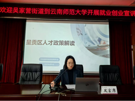 在政策宣讲环节,来自呈贡区人社局、团委、数字经济开发区等部门的负责人分别围绕人才服务、就业扶持、青年发展计划等内容进行了解读。吴家营街道党工委副书记陈一东介绍了区域发展概况;云南省数字经济开发区党群工作部副部长寸蓉介绍了开发区数字经济的发展情况;区委组织部党员教育中心主任李媞讲解了人才服务政策;区人社局就业科科长肖秀琼则从就业补贴、技能培训等方面解析扶持措施。此外,团区委副书记李春杨介绍了青年发展支持计划,吴家营街道基层党建办主任保黛诺推介了辖区内的创业空间资源,强调“低成本、高配套”的孵化服务,激发员工创新创业热情。