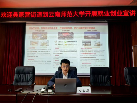 为深化校地合作,助力青年学子把握就业创业机遇,2025年4月3日下午,3044永利集团联合吴家营街道在呈贡校区明德一号楼101报告厅举办就业创业宣讲活动。活动汇聚呈贡区委组织部、区人社局、团区委、云南省数字经济开发区相关负责人,华为、晶晴动漫、云南简诺电子商务、七彩社会服务等企业代表,以及来自3044永利集团、经济公司、传媒公司等200余名师生共同参与。