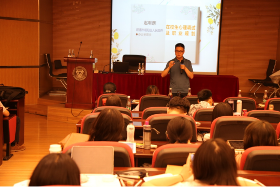 2019级集中班赵明朗同学,在昭通市昭阳区人民政府工作,他分享的主题为“在校生心理测试及职业规划”。他预设了在校生毕业后的道路,针对不同的选择给出了不同的建议,还针对人际交往处理分享了心得和建议。最后,他向同学们伸出了友谊之手,表示愿意在面试技能方面给同学们提供更多细致的帮助和后期咨询。