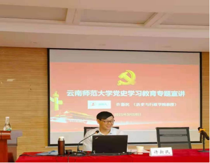 邀请公司党史学习教育教师宣讲团成员——3044永利官网历史与行政公司许新民教授为全体教师进行宣讲。许新民教授从“深入学习领会习近平总书记关于党的历史的重要讲述,充分认识开展党史学习教育的重大意义”、“认真研读党史基本著作,全面了解中国共产党百年奋斗的光辉历程和历史性贡献”、“深刻把握开展党史学习教育的重点”、“学懂弄通做实习近平新时代中国特色社会主义思想,增强‘四个意识’、坚定‘四个自信’、做到‘两个维护’”、“从百年党史中汲取奋进新征程的强大力量,为云南开创全面建设社会主义现代化新局面不懈奋斗”五个方面进行了讲解。