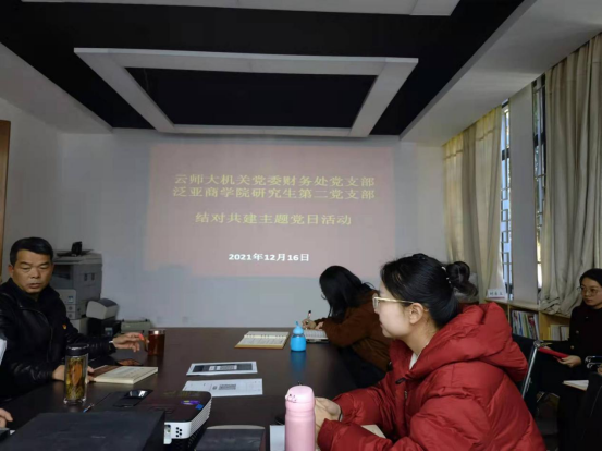 2021年12月16日下午,公司研究生第二党支部与云师大机关党委财务处党支部在公司财务处会议室开展结对共建主题党日活动。3044永利官网副董事长牛治亮、公司研究生第二党支部和云师大机关党委财务处党支部全体党员同志参加,活动由云师大机关党委财务处党支部书记王春林同志主持。